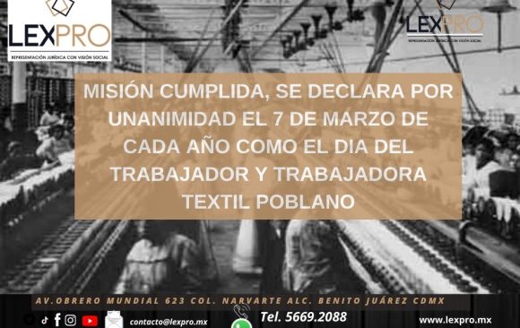 Lo logramos, 7 de marzo, dia oficial del trabajador textil poblano